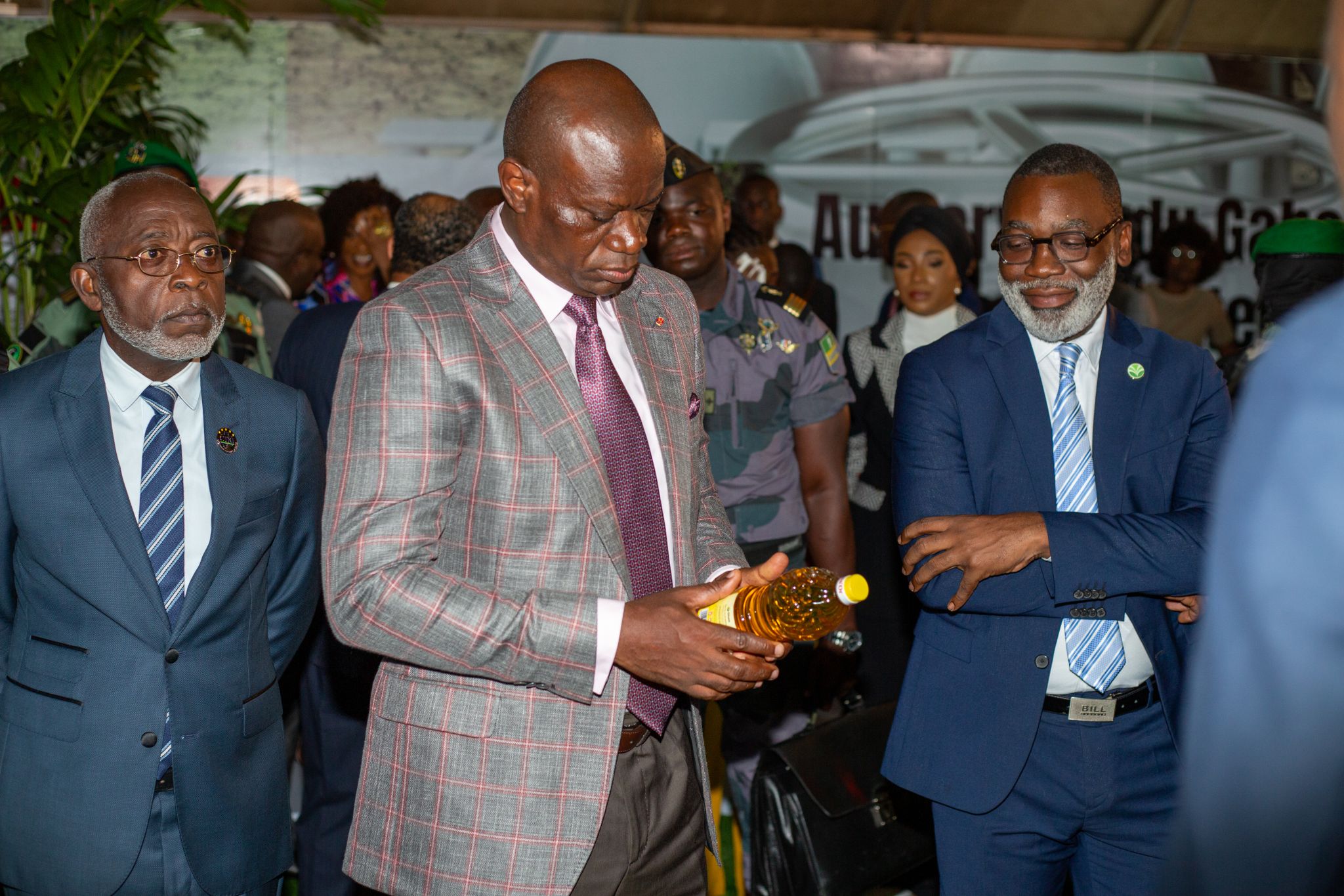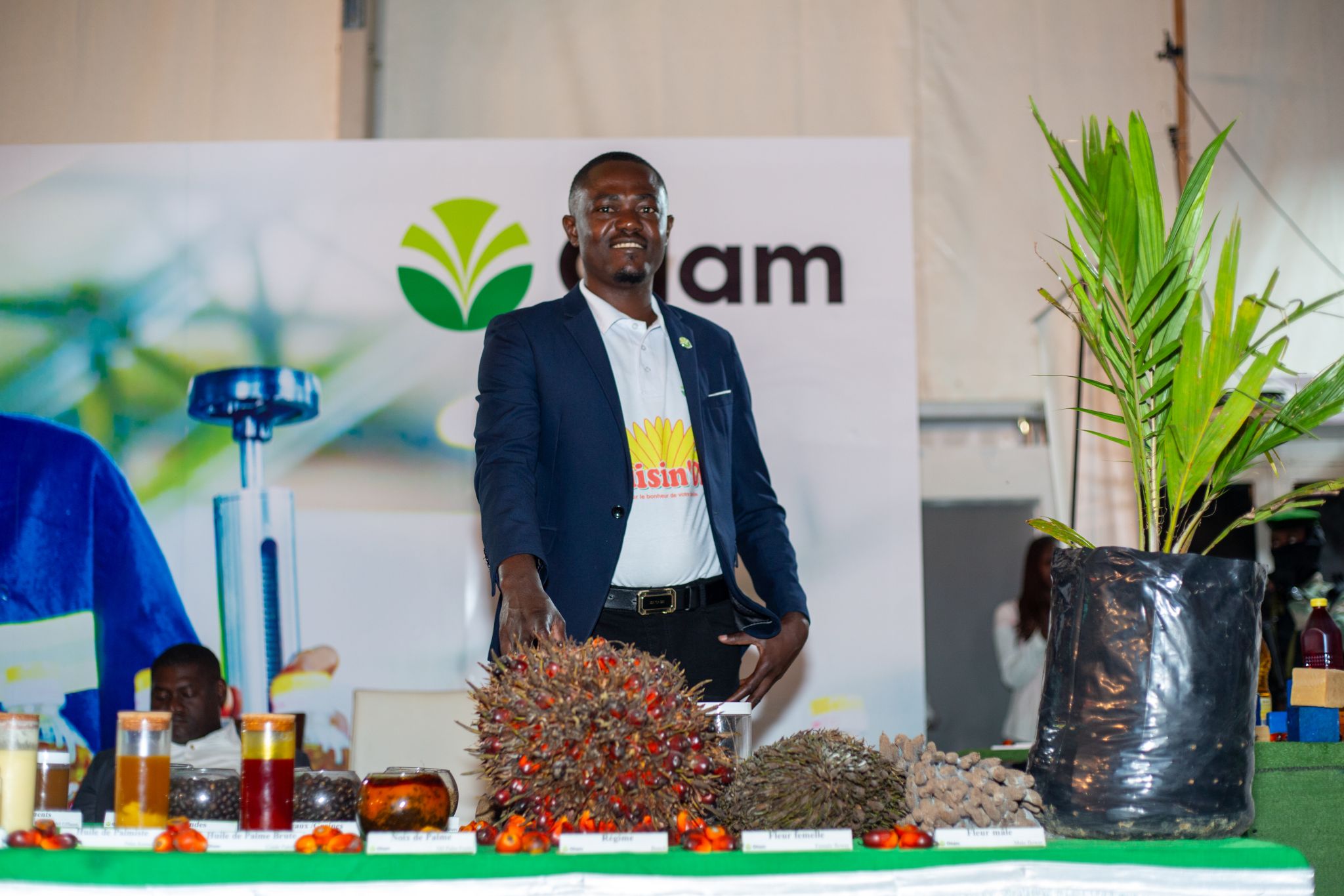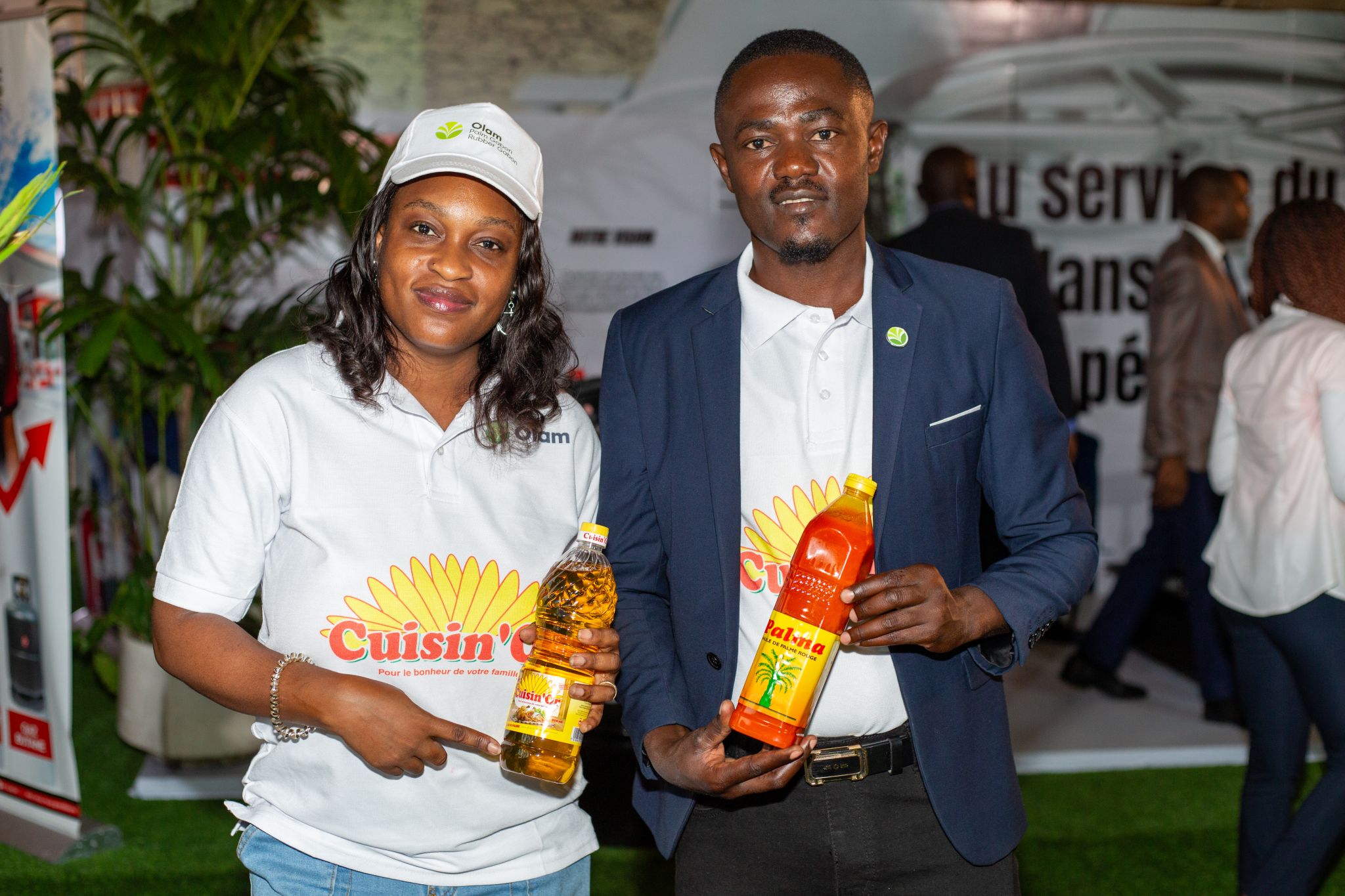 L’une des visites les plus attendues de cette journée a été celle du stand d’Olam Palm & Rubber Gabon. Accueilli avec enthousiasme par M. Christophe EYI, Directeur Général, et M. Cyril NSI ONDZIGUI, Directeur de la Communication, le Chef de l’Etat a pu découvrir, en détail, le parcours fascinant de transformation de la graine de palmier à l’huile de cuisine.